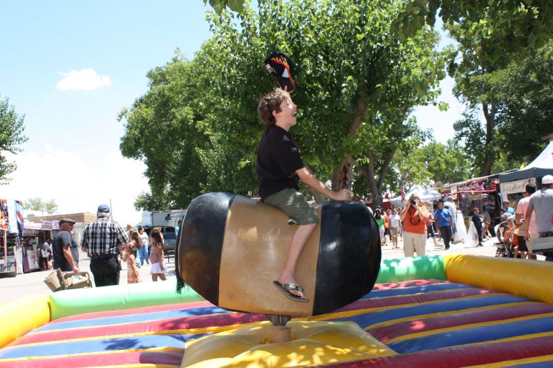 Bridger rode a mechanical bull at the Deming Duck Races. He had so much fun he drew a crowd.