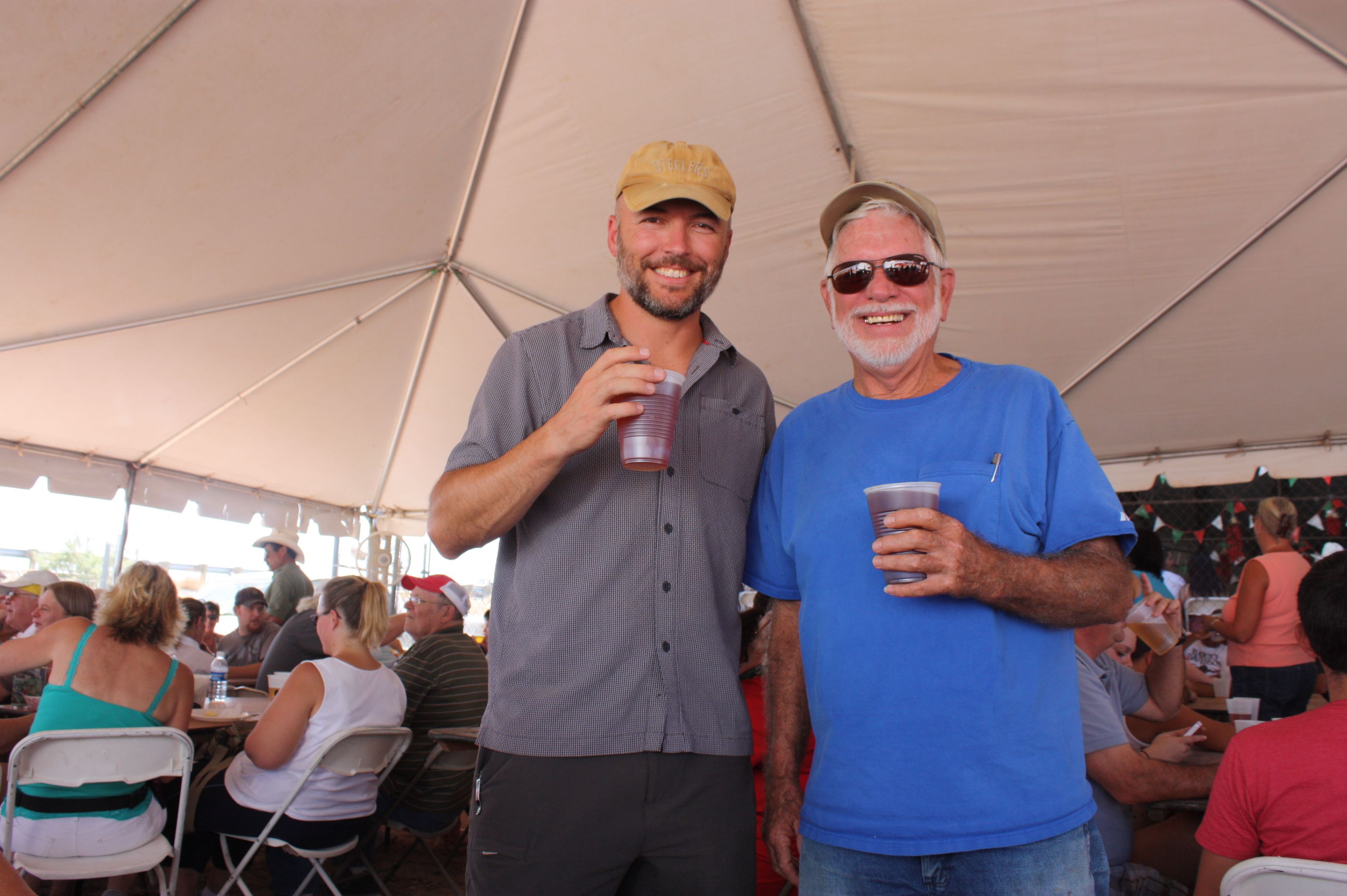 Brian and my dad in the High Desert Brewery beer tent at the chile festival. Their slogan is “None of Our Beers Suck!” We tried several — delicious! My favorite? the IPA of course!