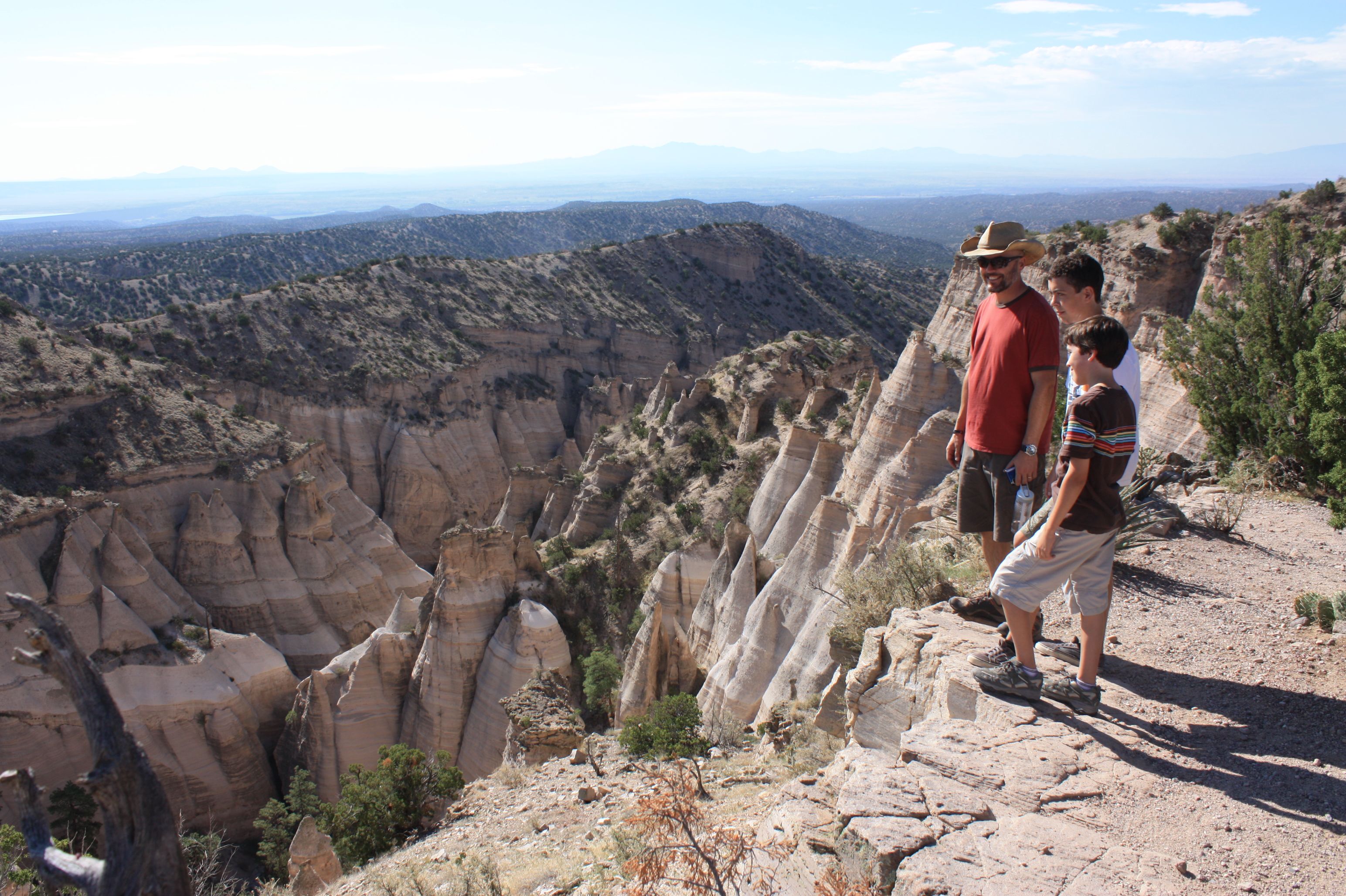 The big payoff for our hours of hiking – an amazing view of the slot canyon and tent rocks from above, plus a view all the way to our lakeside campground.