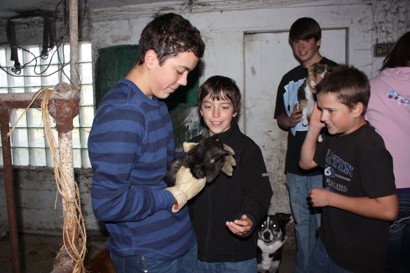 Every farm has cats, right? The Berger kids introduced us to the barn cats and all the kittens. Note the leather gloves- this one was kinda feisty.