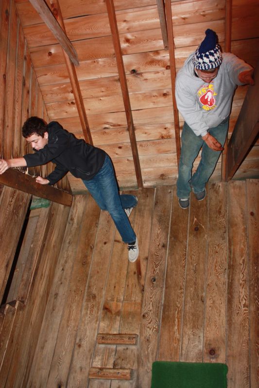 Carson defying gravity! and climbing a wall at the Mystery Spot.