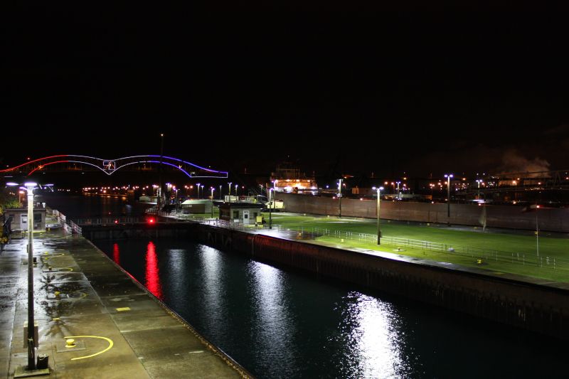 The Callaway heading into Lake Superior under the American end of the bridge.
