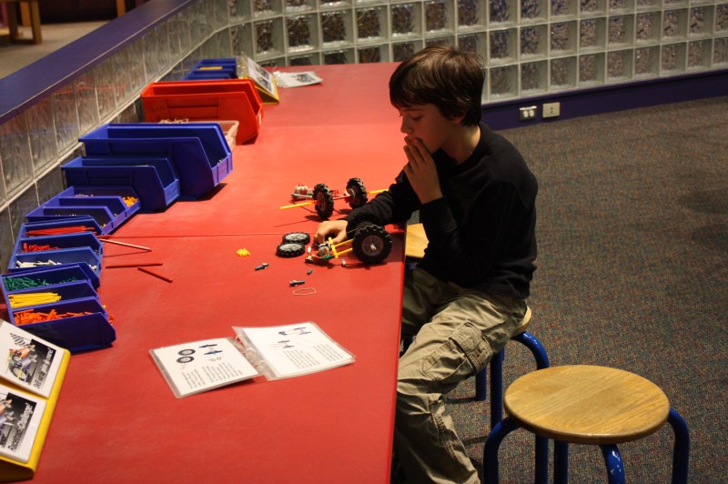 Bridger puzzling out how to add a second engine. He wanted a faster car.