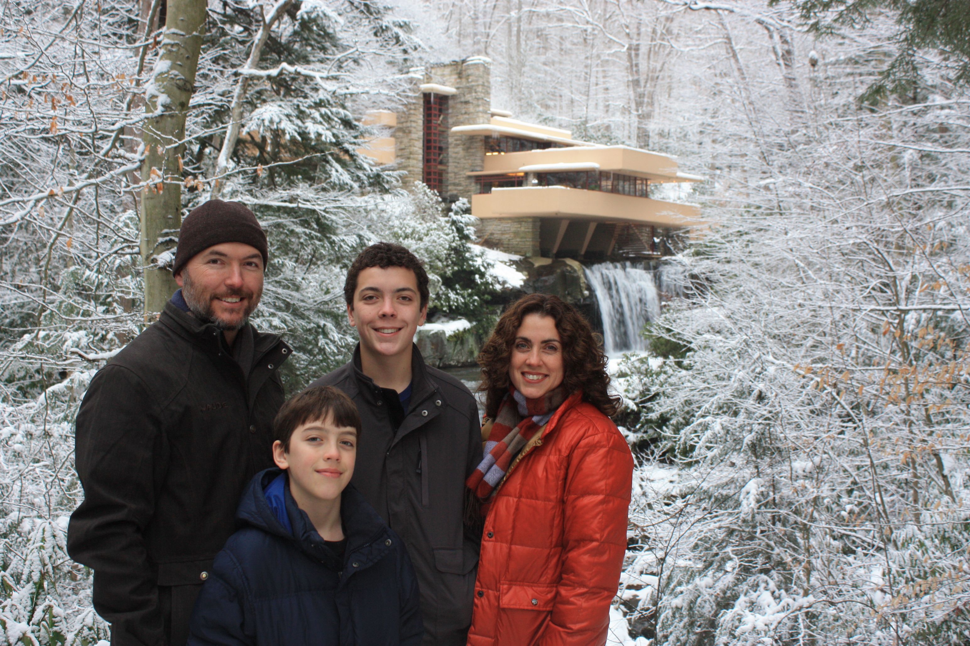The Boggesses at Fallingwater, our new home. 🙂 They do have bus parking!