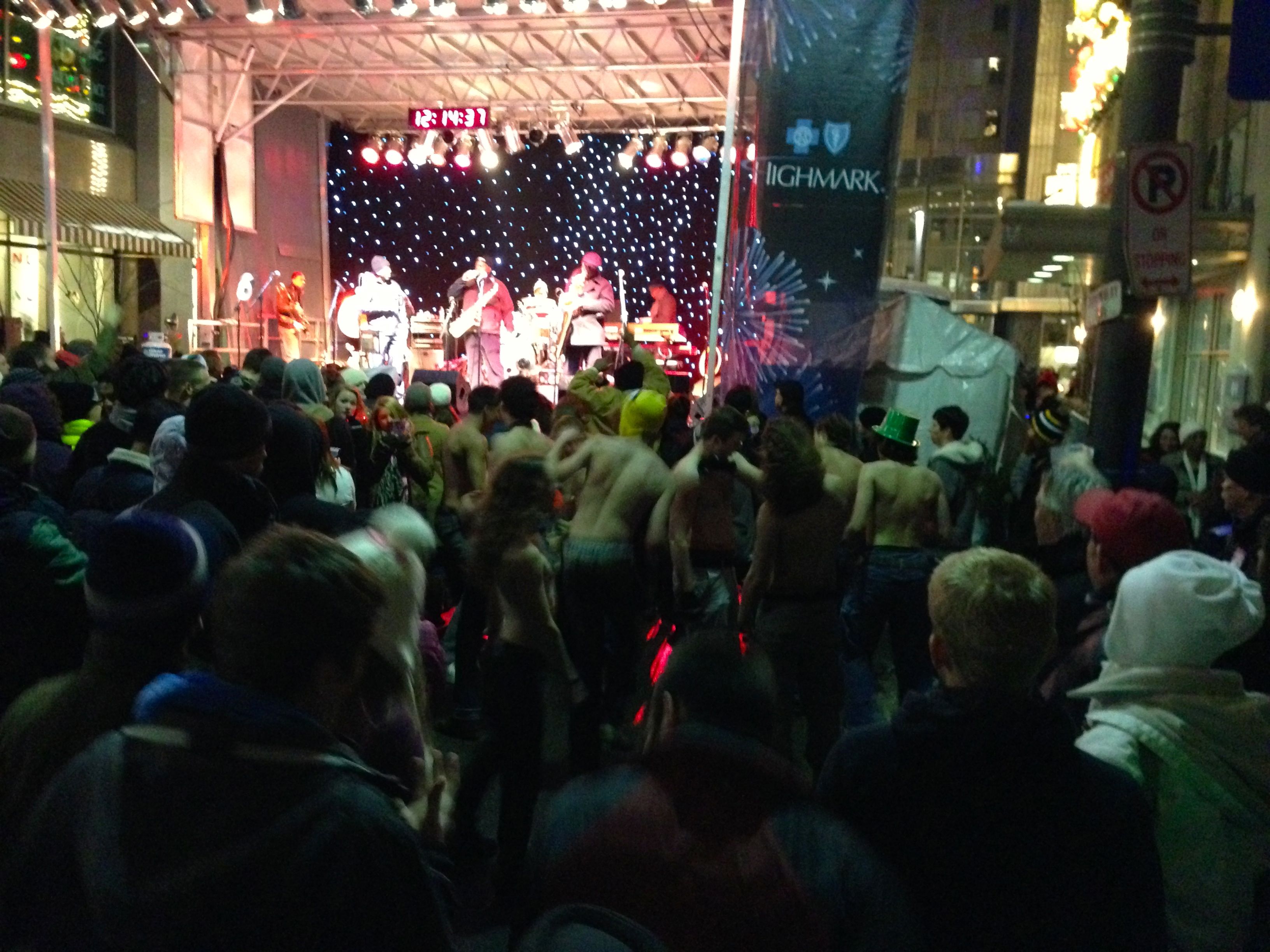 …but not like these crazy shirtless guys! It was very cold! The band was The Dirty Dozen, an awesome New Orleans brass band.