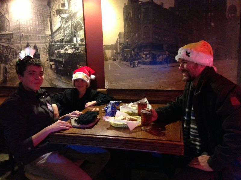 Time out from the street party for a corned beef sandwich at Sammy’s.