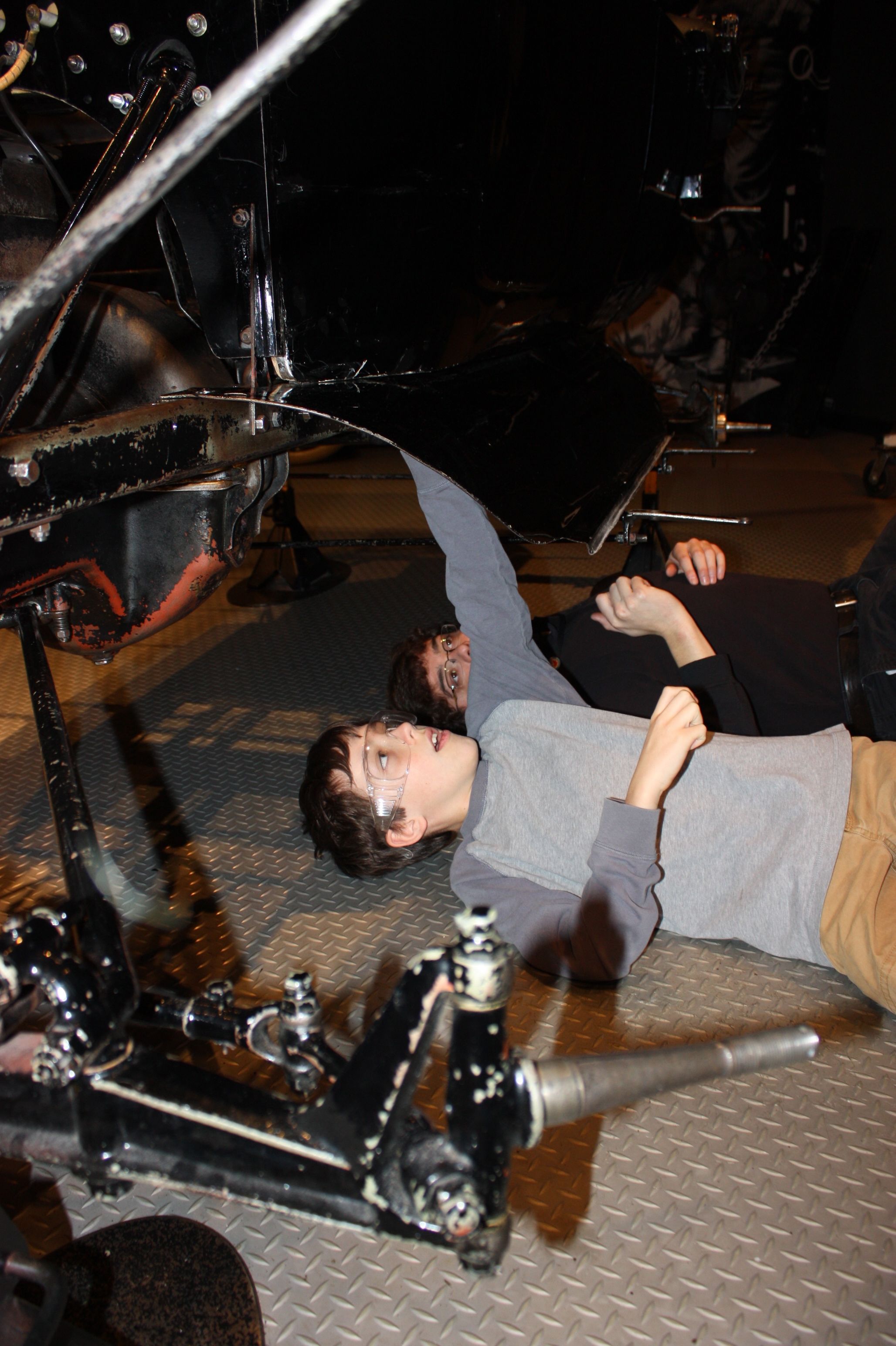 They rebuild this Model T, start to finish, every day! Bridger and Carson got to help with some of the bodywork.