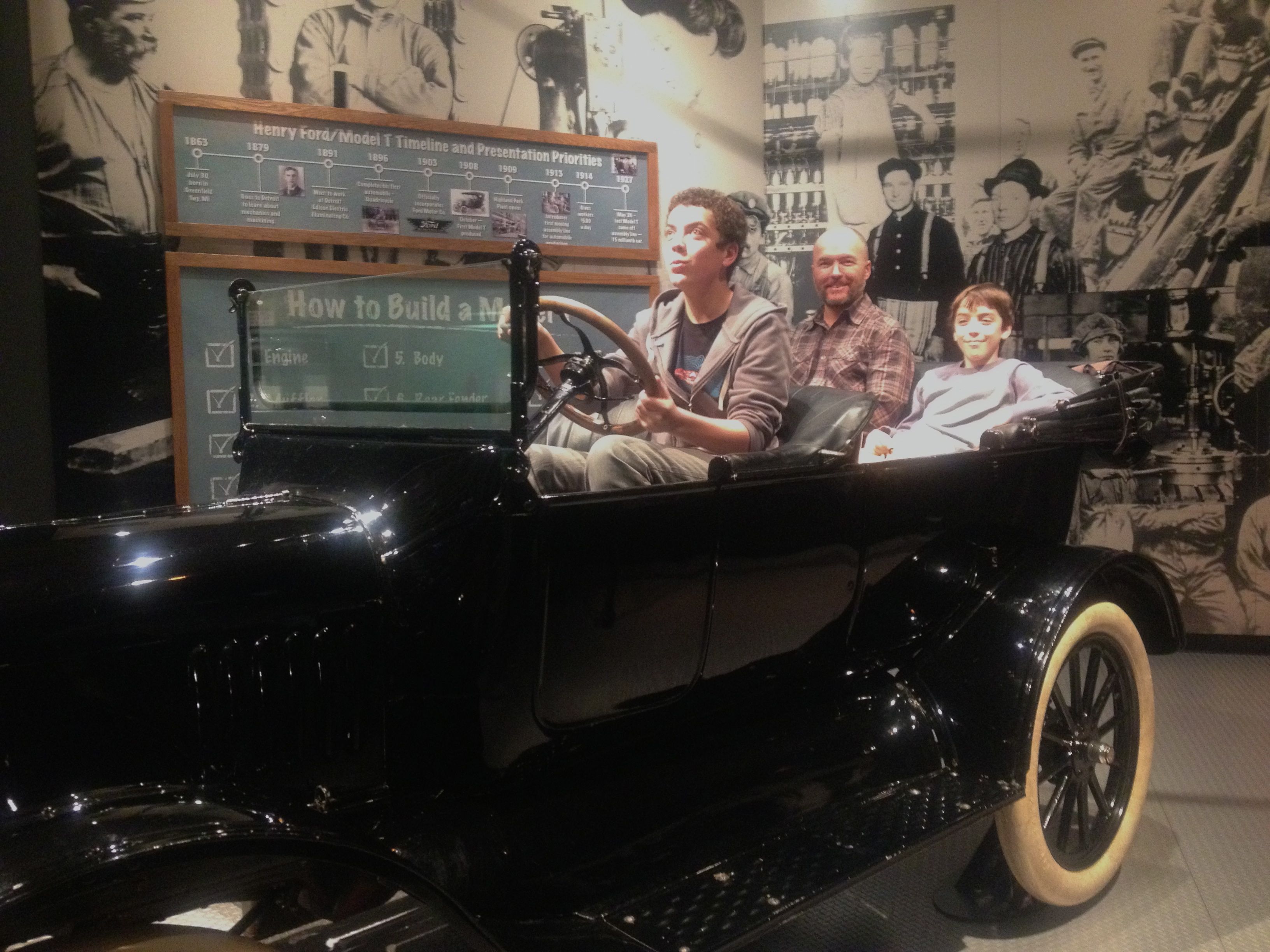 At the end of the day we got to climb into the finished Model T. Here’s Carson whistling us along on a Sunday drive.
