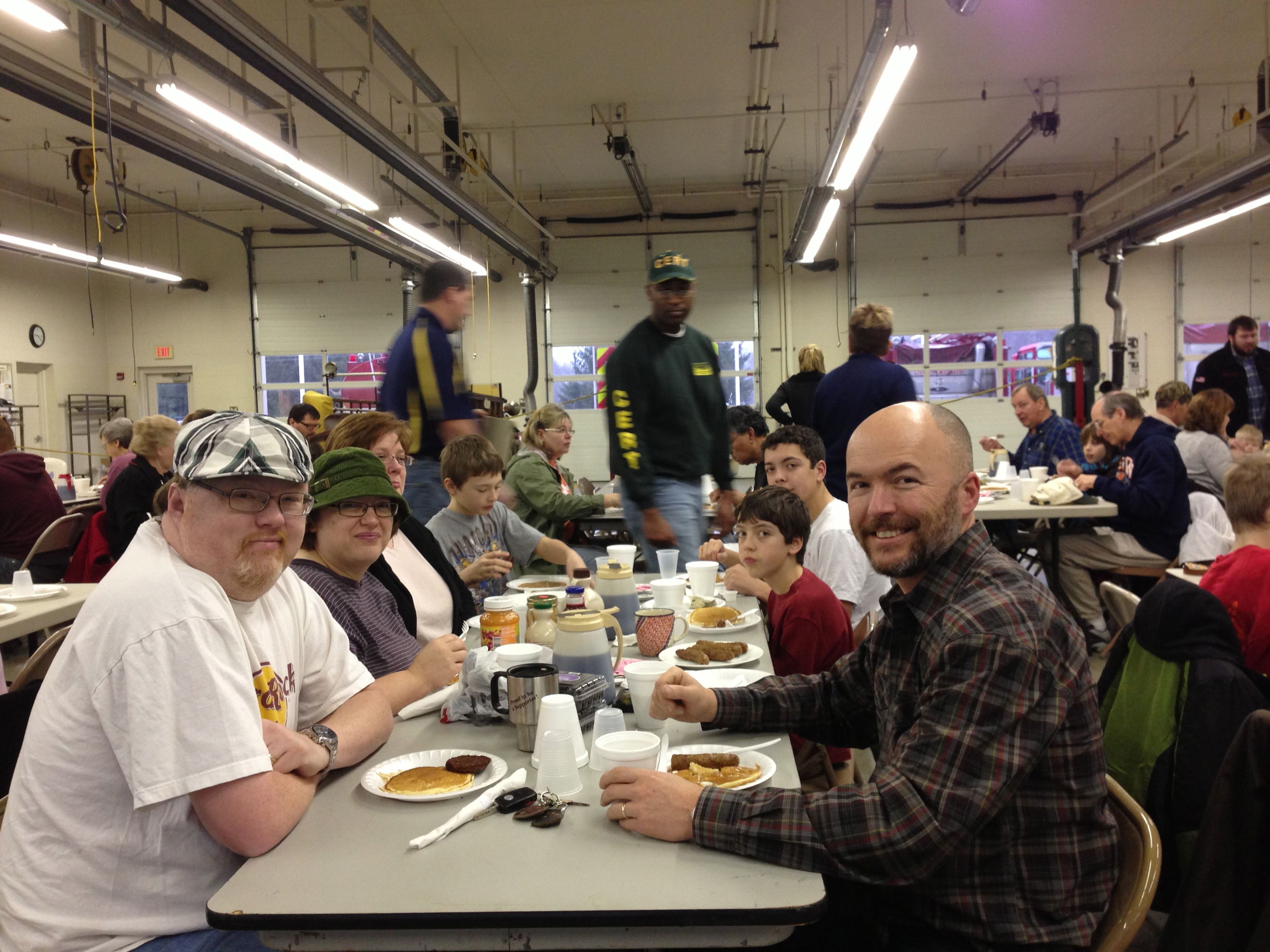 On Sunday morning we went to the community pancake breakfast. All proceeds support the volunteer fire department. Ah, America.