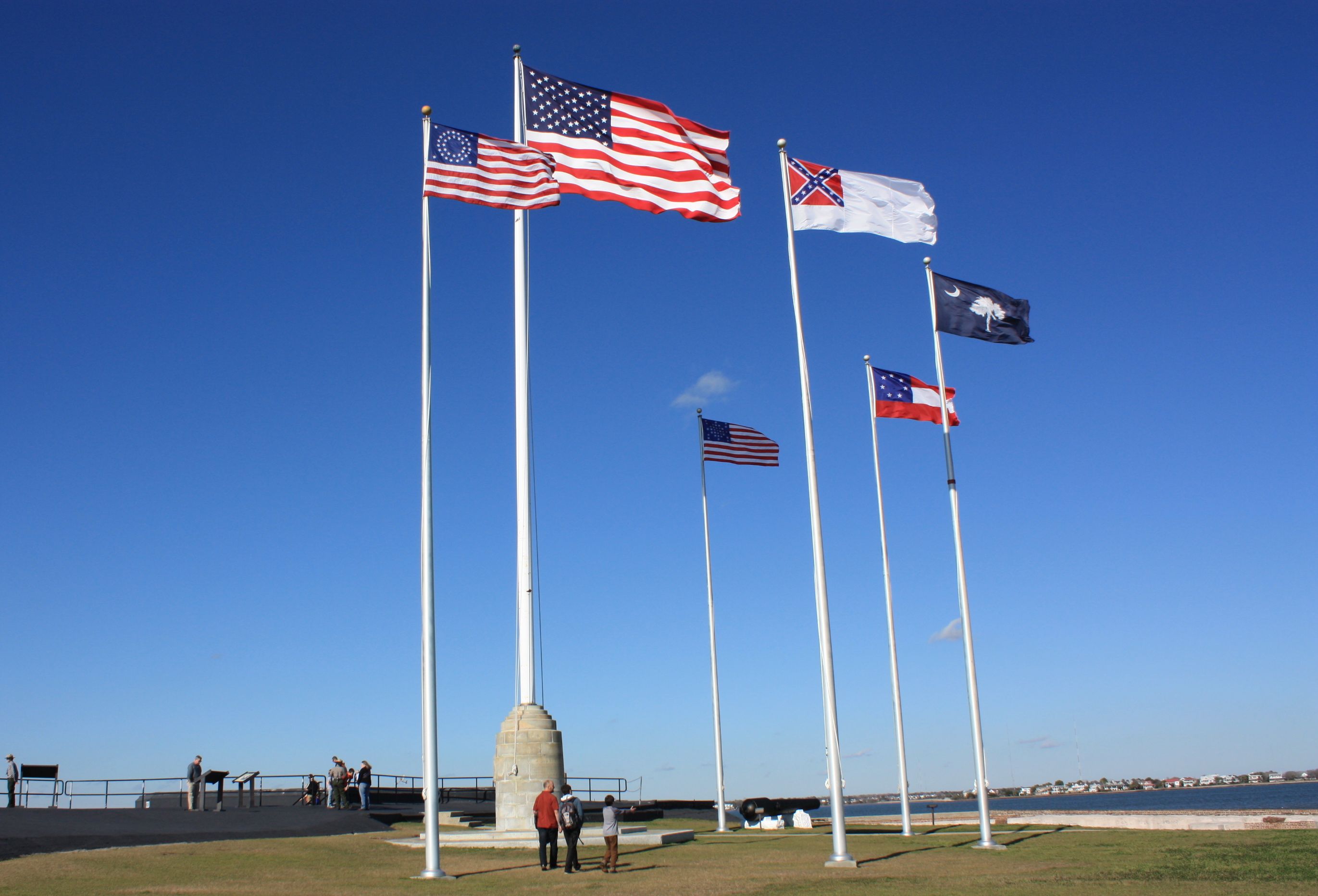 Brian and the boys walking across the flag field at Ft. Sumter.