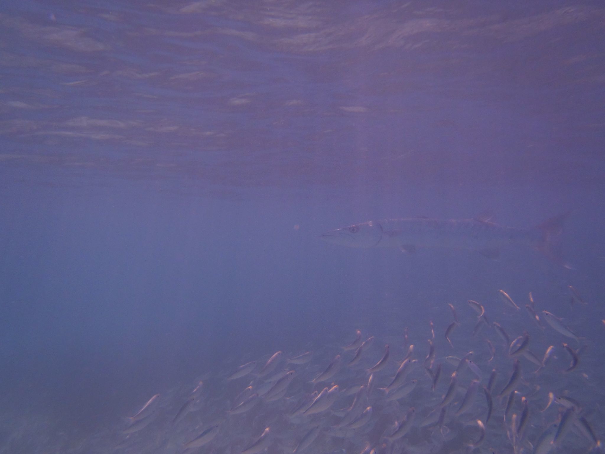 Brian swam into a school of fish… and found a barracuda waiting for him!