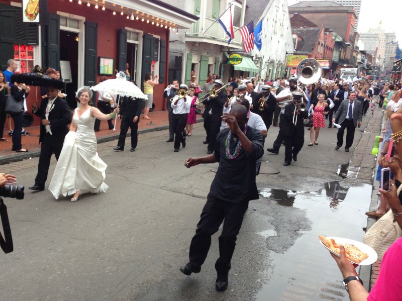 We happened to catch this wedding parade dancing down Bourbon Street.