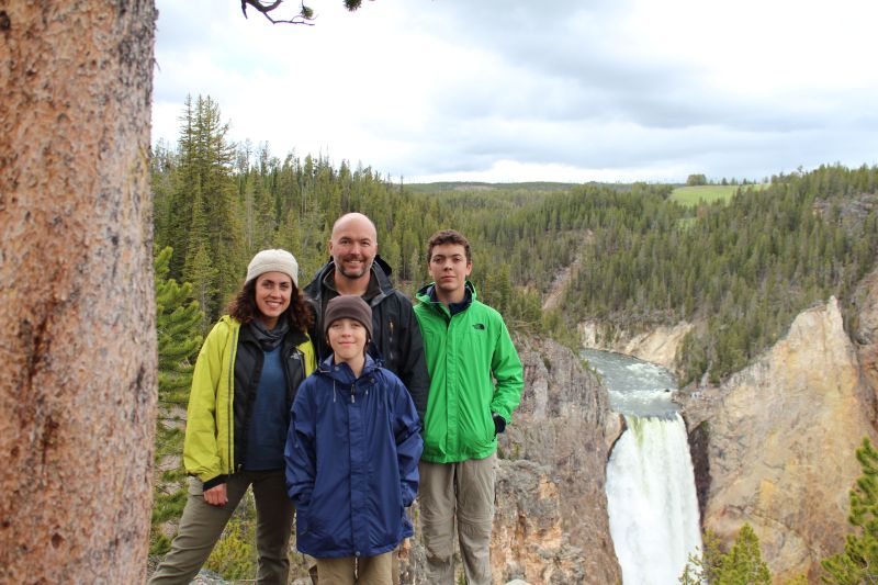 Standing above the Lower Falls of Yellowstone River on the south rim trail. This section of the river is known as the Grand Canyon of Yellowstone.