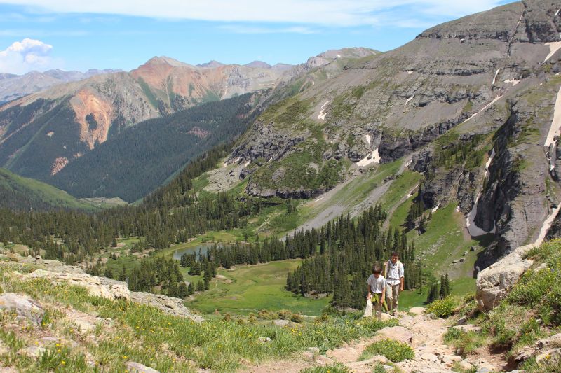 Almost to the Upper Basin. That’s Lower Ice Lake behind the boys and waaay below that is the Jeep.
