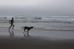 About midnight we stopped at a rest stop, pulled in next to a couple of idling semi-trucks, and settled in for a few hours of sleep. The heat had eased off a little and with open windows, we had a small cross breeze that kept the bus cool. Sunday morning we were off again, stopping at a KOA (Kampgrounds Of America) site just outside of Corvallis. Small drama with a flat tire and roadside assistance (thanks, Beggs Tires!)  but Ayrril, Carson, and Bridger hit the pool while the blown tire was being changed. Corvallis had beautiful sunny weather, with a high temperature of 93 F (34 C). Perfect pool weather, but we were really ready for some sun, sand, and surf. Well, two out of three ain’t bad, right? We drove west on highway 20 toward Newport, winding through rolling hills and forests of the Coastal Range. As soon as we crossed the final set of low mountains, we hit a fog bank blowing in off the Pacific and temperatures around 62 degrees F (17 C). Brrrr!! Still, Sam loved the waves and open beach, we had some amazing clam chowder at a local restaurant, and we saw seals swimming in the open ocean. All in all, not a bad introduction to the Oregon coast.