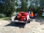 On Wednesday morning, after a delicious home cooked breakfast to get everyone powered up (Thanks Lura!), we loaded kayaks and headed for the river. Uncle Dale had joined us the night before, so with 11 boats in the water we had a real flotilla going! At about the halfway mark we stopped to fling ourselves off a long rope swing into the cool current of the river. After several hours of floating, paddling, and swimming, we pulled the boats out and headed back to the house, more than ready for dinner. After dinner we had homemade huckleberry pie (Thanks McKenna!) and ice cream. Then we waited for dark for more Kick the Can, this time with the adults too,  including the neighbors who came by on their 4-wheeler to drop off some eggs. Anyone who was caught had to sit by the fire until some fast and daring player could free them by kicking the can. Those LeMert kids are ninja fast! Then bedtime, hot tub, shooting stars… the usual. 🙂