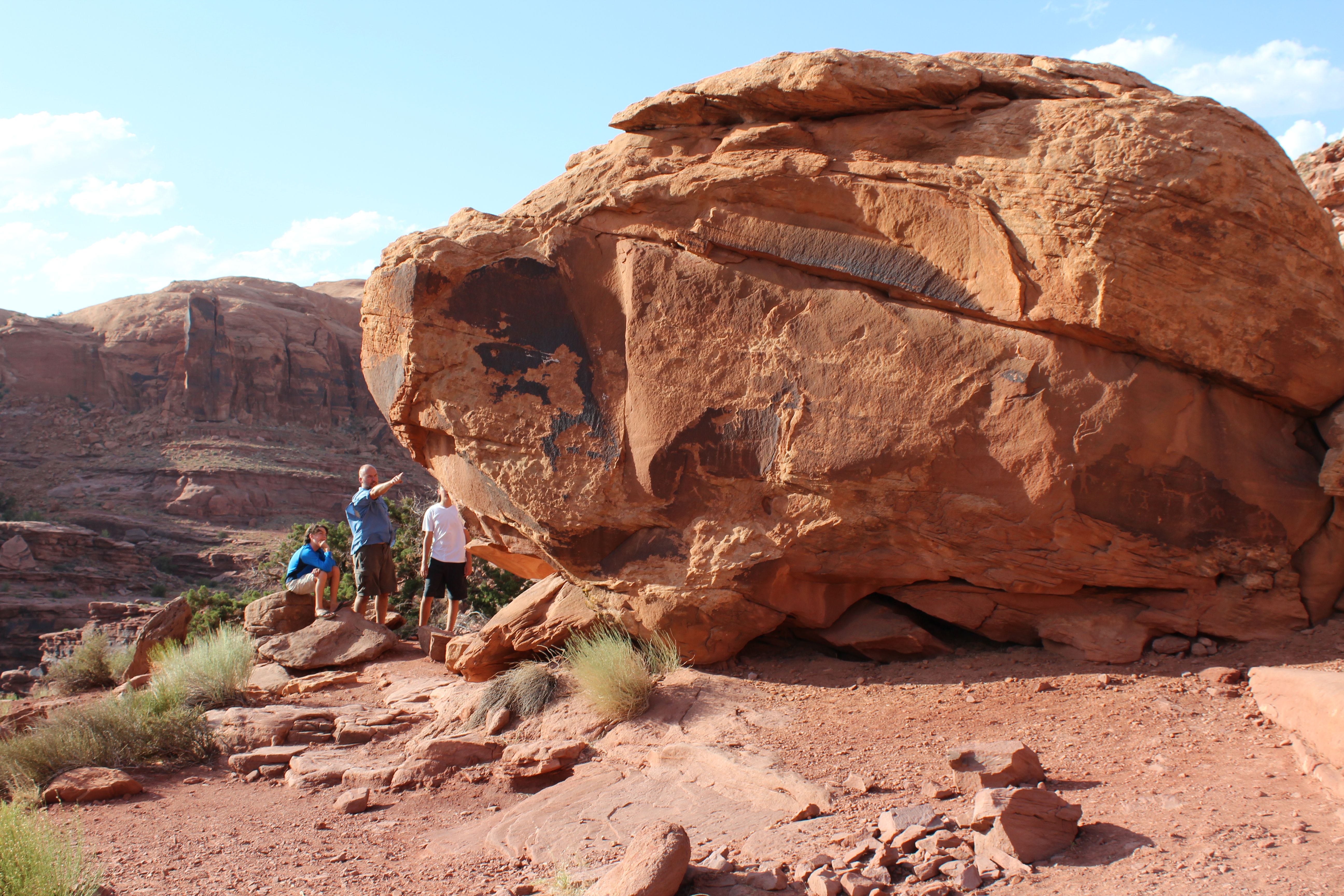 Checking out Newspaper Rock. This huge boulder had petroglyphs on all four sides.