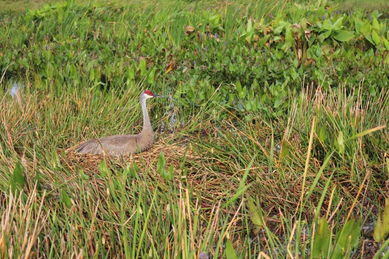 This beautiful Sandhill Crane was sitting on her nest. Her mate was close by, as expected.